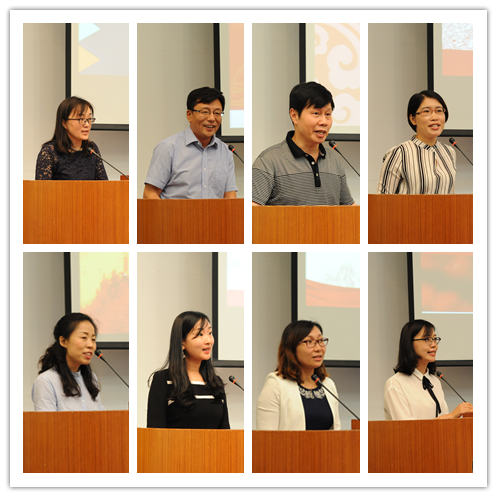 会上,8位来自不同岗位的党员代表分别从不同角度进行了交流发言,外语学院党委书记林嵘介绍了学院党委以党建为引领,以教改为抓手,促进了学院人才培养工作的新发展;图书馆党总支书记施敏俊讲述了发挥党组织的政治核心作用,凝聚共识,推进民主管理、深化人事制度改革和和智能化、现代化图书馆建设等工作;离休党总支书记黄玉中介绍了通过建立机制、创新载体等方式,加强离退休干部思想政治工作,为老干部释放和传递正能量提供广阔平台;信息学院党委副书记林惠英汇报了学院“融入式党建”的大学生党建工作理念,探索完善“党员定岗定责”机制和做强“信仰领航青春”特色品牌;管理学院会计系党支部书记李莫愁以教工支部“组织生活争优质、文化建设抓内涵、助困学生送关怀、结对班级促学风、人才培养见成效”五项工程为抓手,发挥党支部的战斗堡垒作用;产业第一党支部书记李芳芳立足本职岗位,带领党员深入推进党建品牌项目建设,服务学校创新创业人才培养;资产管理处党支部书记莎日娜从以“学”为基础,“做”为关键,以“效”为标准等三方面汇报了支部立足管理和服务职能,发挥示范带头作用;人文学院党建辅导员、学生党支部书记周铮铮讲述了创新支部“三会一课”,积极创建模范支部,严肃党内政治生活,加强党员教育培养。